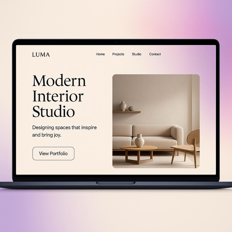 A sleek, minimalistic website for an interior design brand. Soft gradients, elegant typography, and a clean layout highlight the brand’s sense of space and light.